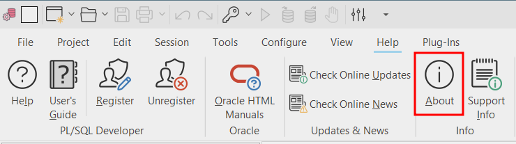 Help > About 버튼을 클릭하면 뜨는 창에서 i버튼을 클릭하면 설정 위치, TNS File 위치, 버전 정보 등을 알 수 있다.