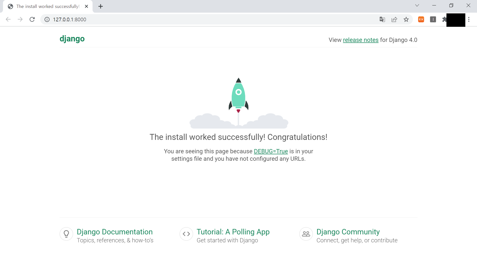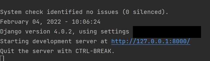 이때, dir 명령어를 이용하여 위치를 확인하여 manage.py가 있는 위치로 이동한다.