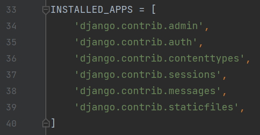 5. 앱을 추가 했으면 settings.py 파일에 추가한 앱을 등록한다. 이때, '추가한 앱 이름', ,를 꼭 붙여야 한다.