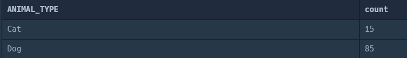 SELECT ANIMAL_TYPE, count(*) as 'count'