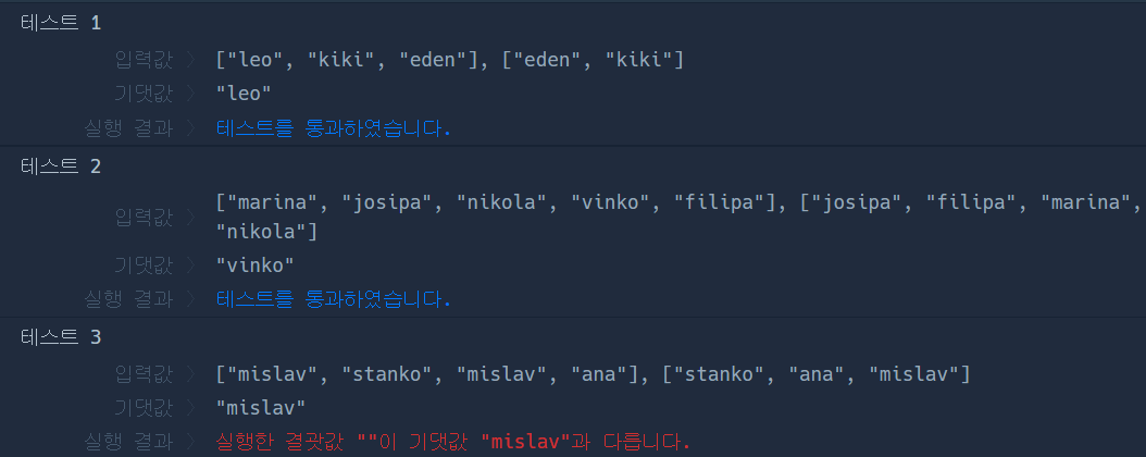 completion의 길이는 participant보다 1 작기 때문에 list변환 후 첫번째 값을 리턴하면 되는 것 같다!